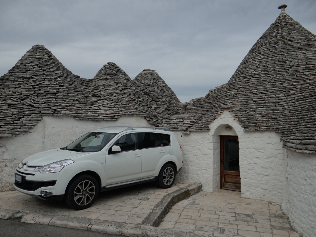Dave the motorhome is feeling rich, he’s in a paid camper only car park (N40.78052 E17.24509)! He hasn’t paid to park for ages, but as we’re in the tourist magnet town of Alberobello he’s coughed up. It’s free overnight, but to park in the day it’s €8 – after so much free camping I was looking around expecting electric hook-up for that price.