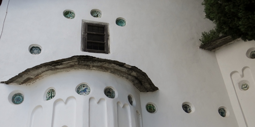 As soon as we opened Dave’s door I could feel the difference in temperatures. Up here in the mountains it was much cooler, Jay reached for his fleece, I put on my jeans for the first time in ages. Zagora stretches along 5 kilometres of road, and as it was Sunday lunchtime most of it was shut. Unable to find anywhere selling fresh fruit, we went for the next Greekish thing we could think of – cheese pies! We’ve developed quite a taste for Tyropites, feta cheese wrapped in filo pastry, made into various shapes and sizes, and served warm. Today they were huge triangle ones, so we had one between us, and also bought another type, sprinkled in icing sugar, for desert. The shop keeper informed us it was cream, it wasn’t cream as we know it, but it was very tasty. We sat in the shadow of the local church, looking out from the balcony towards to the sea way below us. We were joined by a local dog and feeling guilty about the poor dog we’d left in the road, we fed it a few extra bits, when Charlie wasn’t looking.