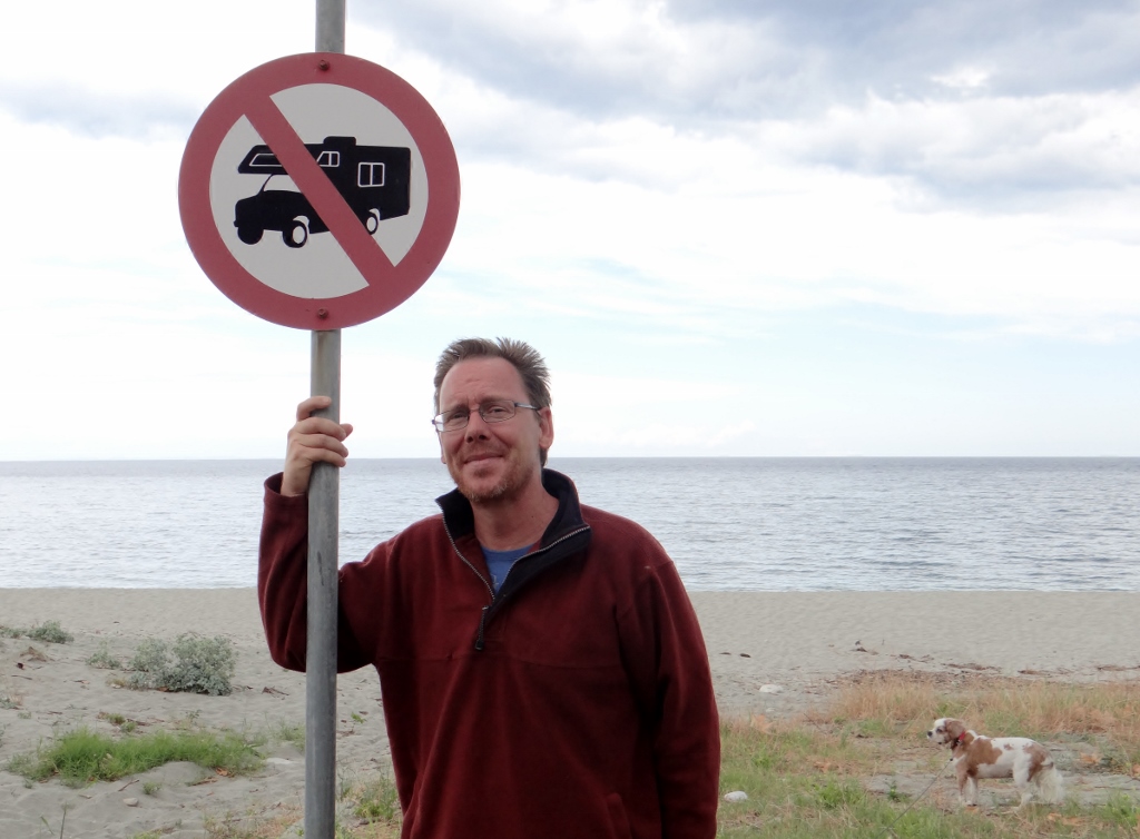 First one of these that we’ve seen in Greece – it appears to be home made (possibly by the campsite at the other end of the village?). Jay’s just spotted one on the ground by where we are parked – but we haven’t seen it if anyone asks!