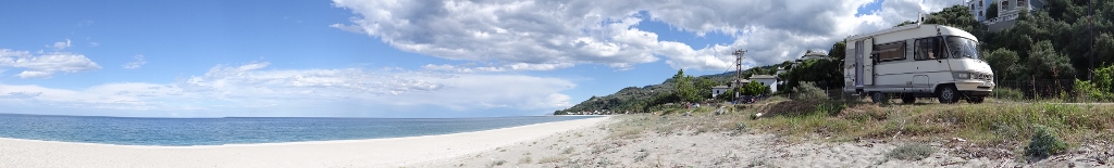 Dave the motorhome has crossed the Pelion peninsular, and is now on its east coast sitting by a beach (for a change) in the resort of Horefto (N39.45757 E23.11861).