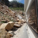 Another few kilometres up the hill we were at the scene of a recent accident. A car had somehow driven off the road and up the rock face next to it. Another car was parked behind it with its hazard lights on, we pulled in behind. I jumped out to check everyone was OK, a man said yes everyone was OK. I checked to make sure that there wasn’t anyone trapped in the car, but fortunately everyone had got out. Jay checked the visibility of the crash site and decided that our warning triangle wouldn’t be much use, it was a fairly straight bit of uphill road, so no one (except the car up the rocks) would take it at great speed.