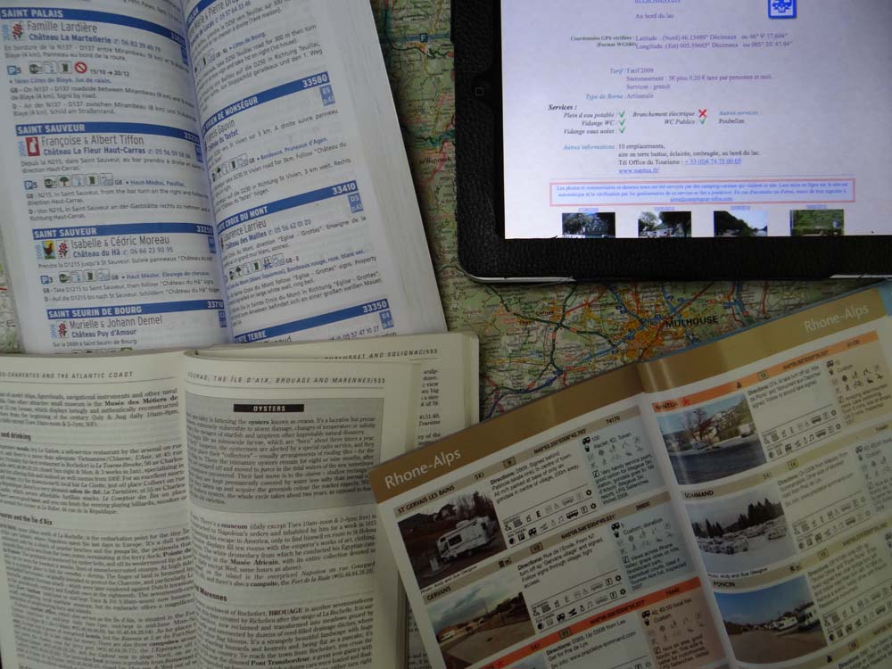 Although the town centre was busy with folks eating and drinking quietly in open air restaurants, we chose to pass on the ice cream/beer and head for home. Planning. When faced with the question: “You have 4 weeks to spend in France, where do you want to go?” our usual approach is to kind of wing it. The Rough Guide, our databases and books of aires, and the map are thrown together and attempts made to match up a rough route with any plans to meet folks. What we didn’t know was that we’d not be going to France just yet, as a text message arrived from Jacqui and Mike (not to be confused with our friends Jacqui and Marc!). “We’re in the Blackforest too, let’s meet up”.