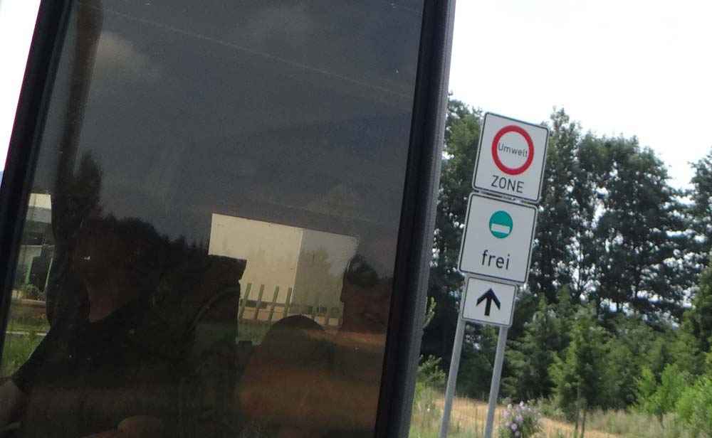 Once Charlie had done sniffing on his morning walk, and I’d done marvelling at the beauty of it all, we headed off south. And became illegals. Germany’s umweltzone system, which prevents vehicles like Dave, which breath the black smoke of a devil, from polluting town centres, caught us out once again. Normally there’s a bypass around towns with these zones, so sticker-less old wagons like us can avoid them. Freiburg, it turns out, has no such bypass. Before we knew it the dual-carriageway we were on became umweltzone, and we became naughty. It’s not the first time it’s happened, as once again we tip-toed, as much as you can in a 3 tonne truck, through the town without being pulled by the rozzers. As it’s just a sticker system, and isn’t enforced by cameras (unlike the Italian ZTL system), we’ve gotten away with it, Scot-free!