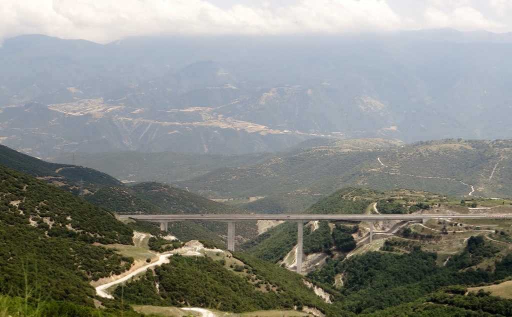 After the two hefty tolls we experienced on the Peloponnese and the bridge to get off it we decided to avoid the toll road motorway, and spent the next five hours wiggling around either side of it, crossing under it several times and rising high above it on a mountain. As Jay grimaced in pain I kept reminding him that it was free.