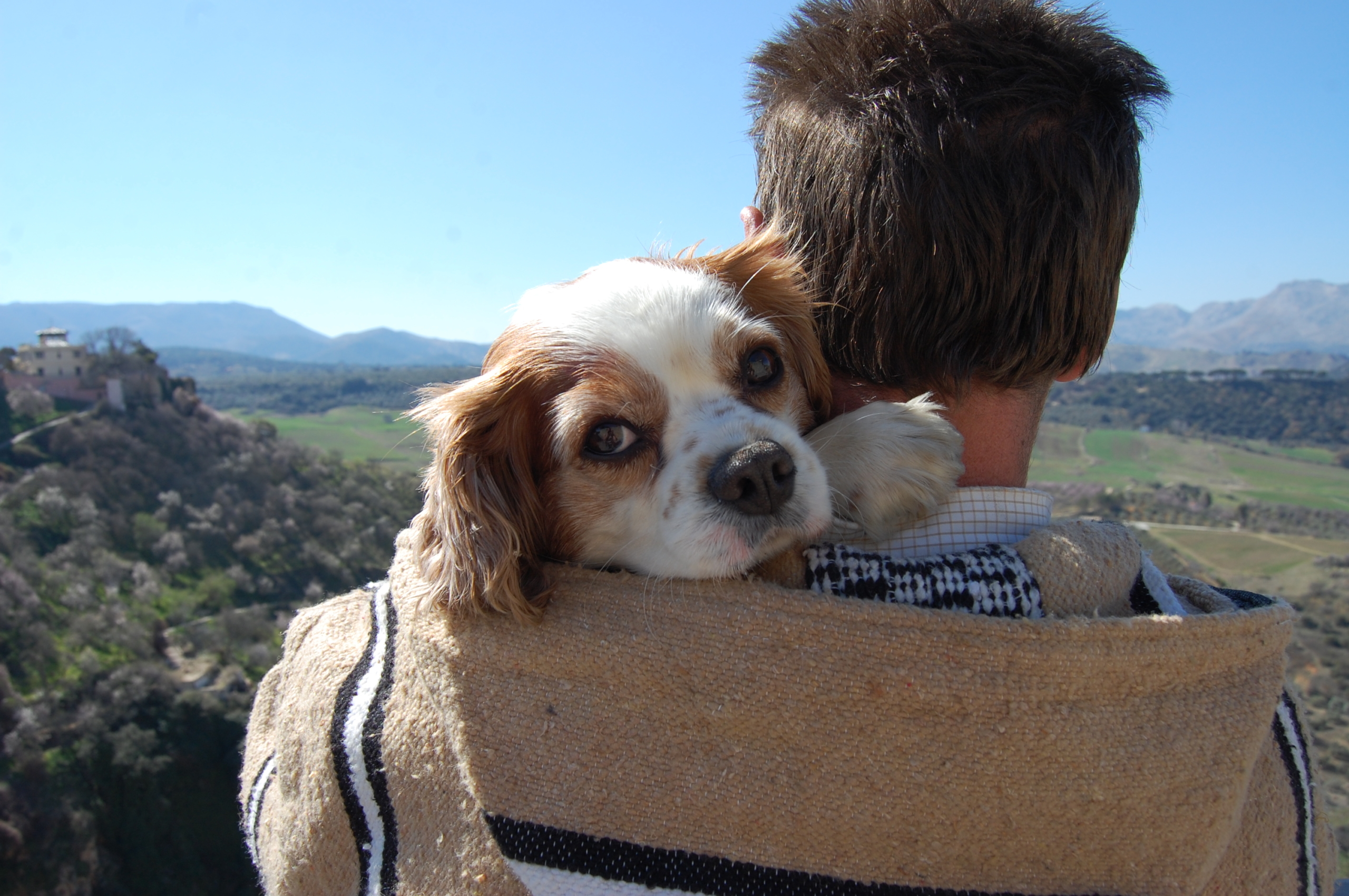 This fear thing by the way… He was afraid of so many things, we learned how to tell people in the easier languages that we were carrying him as he was afraid. In French, we picked up “Il a peur de son ombre” – he’s afraid of his own shadow! The little fella was terrified of bridges, walkways with gaps, heights (except Vesuvius, where he seemed happy to flirt with death on the edge of the crater), cats, any water deeper than his poochy-man-bits (referred to as his ‘bad boy’), the dark (LEDs freaked him out), crowds and loud noises (especially fireworks, which we had to make dens for him to hide in the back of).