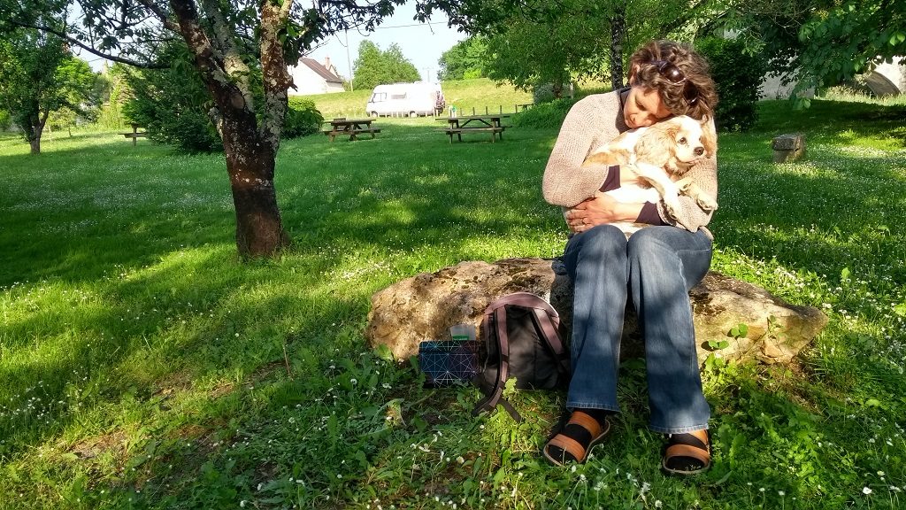 That was three days ago now, and the raw grief we’ve felt is slowly, gradually easing, bursting upwards like a newly tapped oil well from time to time, unannounced, intense. Our ears still listen for his snores and barks, we expect his smiling face at the door to the motorhome when we come back in, and eating without at least one of his beady eyes watching each mouthful is a sad experience. When I opened the curtains to our motorhome yesterday in a valley near Mont Blanc, the beauty of the place hit me: this was a place I’ve love to sit with Charlie and enjoy life, but I couldn’t, ever again, he’s gone from us. Ju’s dreamed of a voice telling us to look for him in the high Alpine passes and the snowy valleys. Oh god, we loved that dog with all of our hearts!