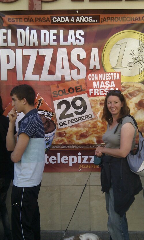The town proves to be a pleasant off-the-beaten-track kind of place. We take advantage of a €1 pizza offer (39 minutes killed in a queue of students who exit loaded with 5 pizzas each) and wander the old town in the sun. The Rough Guide describes the place as an ‘ordinary modern town’, which makes it sound very dull. I quite like it; it feels like the ‘real Spain’. We had a cheeky beer in town and again we’re amused by how loud and animated the locals are. [edit] We talked about this afterwards and we think this place is far from ordinary. The Rough Guide man must not have come from Nottingham. The old town was twin walled with a castle, and it’s still all visible. Roman baths have been found. The whole place is on a hill with views out across the white homes and distant mountains. The houses in the old town are immaculate, each with its tiled entrance room protected by a huge wooden door. Guidebooks are just one person’s opinion and we have to remind ourselves of this from time to time. :>) [end if edit]