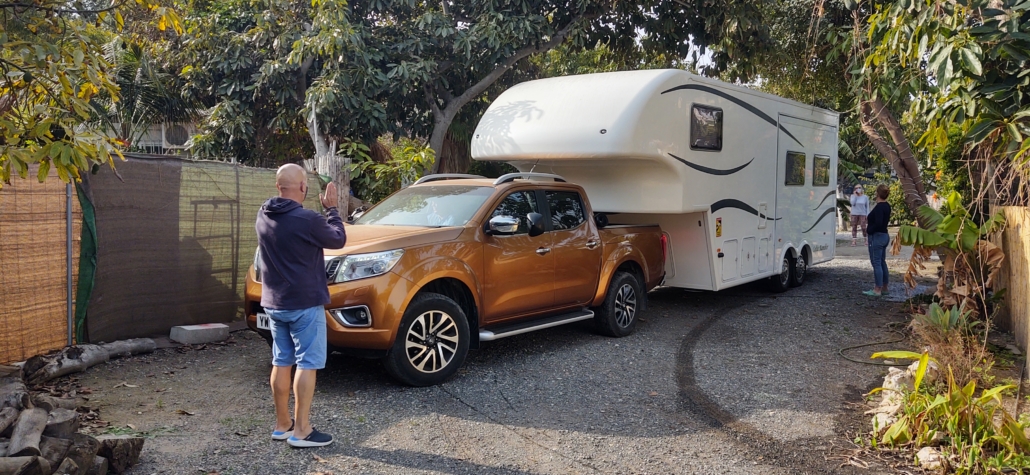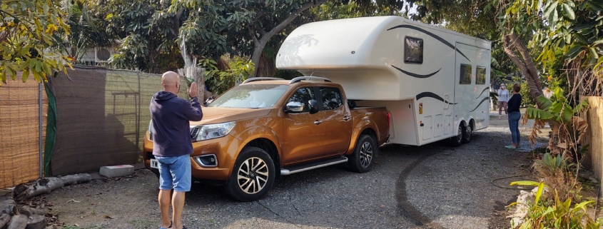 The first of the Brits to depart from the campsite were Cath and Mark. They left a big gap on the site and not just because of the size of their rig. They were great neighbours and because we walked past their pitch every time we went anywhere from our pitch we have spoken to them the most on the campsite. Mark also kindly drove all the way to Malaga airport to collect us when we flew back after Jay’s Mum’s funeral. They are travelling in a fifth wheeler, something we don’t see a lot of on the road, and as the campsite can be a bit tight in places, there was quite an audience for when they set off.