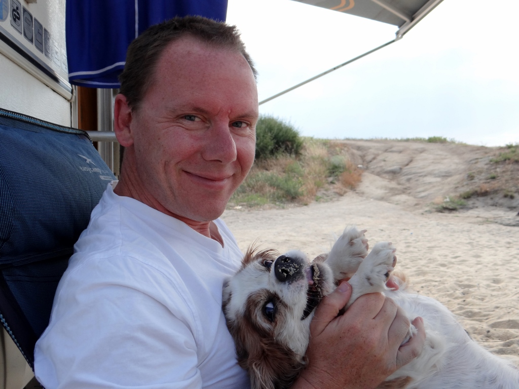 Having decided yesterday that we needed to move on, or we would end up trying to beat Connie and Marc’s record of 45 days on that same beach last year, we had a slow morning. After breakfast and a short Charlie walk (he’s been out partying last night too and had scoffed too many crisps) I set about cutting Jay’s hair. After sitting in a place like this for a hair cut, it’ll be hard to go into a barbers shop again!