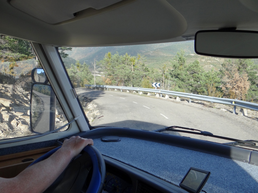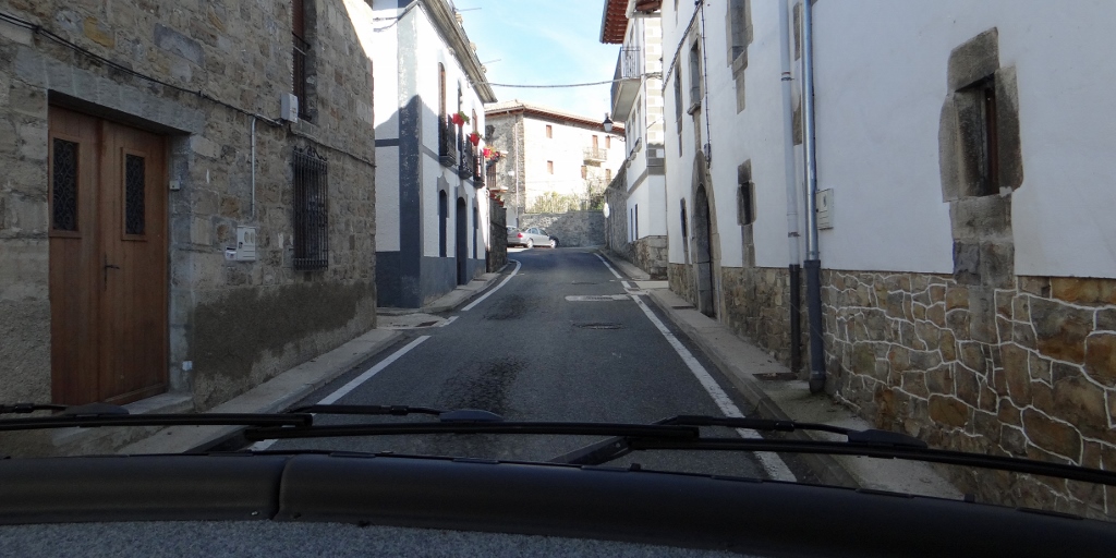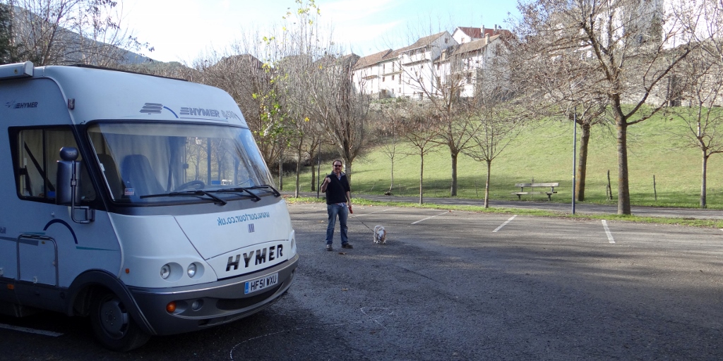 Zagan the motorhome is a tad shaken and a tiny bit dented, sitting in the free car park in the town Anso (N42.75623, W0.82592).
