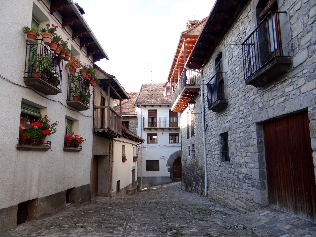 I could have happily stood there all day and watched the birds soar in one by one, but we decided to head off and follow the green-lined road on my map (scenic views) to the small town of Anso – cue many ‘and so’ phrases such as ‘And so here we are in Anso’. The route took us up many twisting hairpins and along roads narrow roads with huge drops off to one side calling for fingers and toes to be crossed in the hope that no one is travelling in the opposite direction. As we reached the top of one pass the jagged grey teeth of the Pyrenees gnarled at us from the horizon.