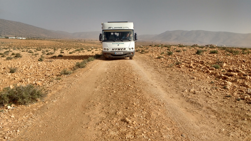 Tazerzite was empty compared with the in-town (or close to town) Tiznit sites, maybe only 30 or 40 French motorhomes compared with the hundred or so in the other two sites we saw. With huge pitches, separated by mature hedges buzzing with bees, a spotless (best yet!) shower block and the protection of a giant walled-in compound, it did the job for us as an overnight stop. If we were staying much longer though, I’d be wanting a second form of transport like the other outfits were carrying on trailers – quad bikes, mopeds, cars, mokes, motorbikes – rigs over 10 metres long are (almost) the norm in some places.
