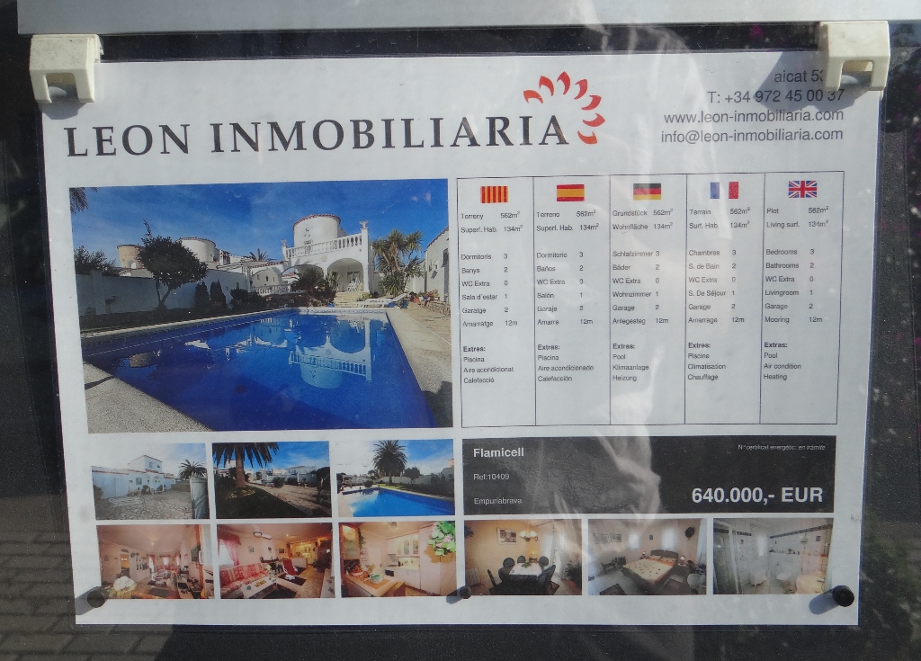 After lunch, Ju and I headed off to see the town. And immediately I got a sight of the first canal my Money Muppet hat went on. There are either some seriously wealthy people around here, or I’m eyeballing the Greatest Show of Money Muppetry I’ve ever seen. Canal after canal rolled past, capped with glass-flat waters, reflecting white-washed villas and encasing the hulls of immobile yachts and pleasurecraft. There’s only the odd person to be seen, almost everywhere’s closed up for the winter. The closer we got to the beach, the bigger the villas, the more enormous the yachts, but still no people. Estate Agent windows drew us in. £450,000 seems about the going rate for a 3 bed villa with a mooring, which again seems about the average around these parts – this listings importantly tell you the distance your mooring is away from your door.