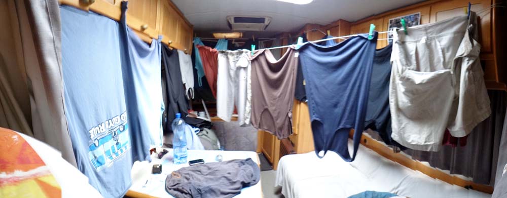 Last night I moved all of our laundry under the awning before we headed for bed. Jacqui and Mike’s Dutch neighbours on the campsite had mentioned that a storm was due overnight, but as we could see the stars we figured it probably wouldn’t happen so left the washing out – sort of. I was woken in the night by the patter of light rain on Dave’s roof, nothing serious so I closed my eyes to go back to sleep. A second later my eyes were filled with bright red light, as lightning flashed nearby. I crept out of bed, gathered in the laundry and rolled in the awning.