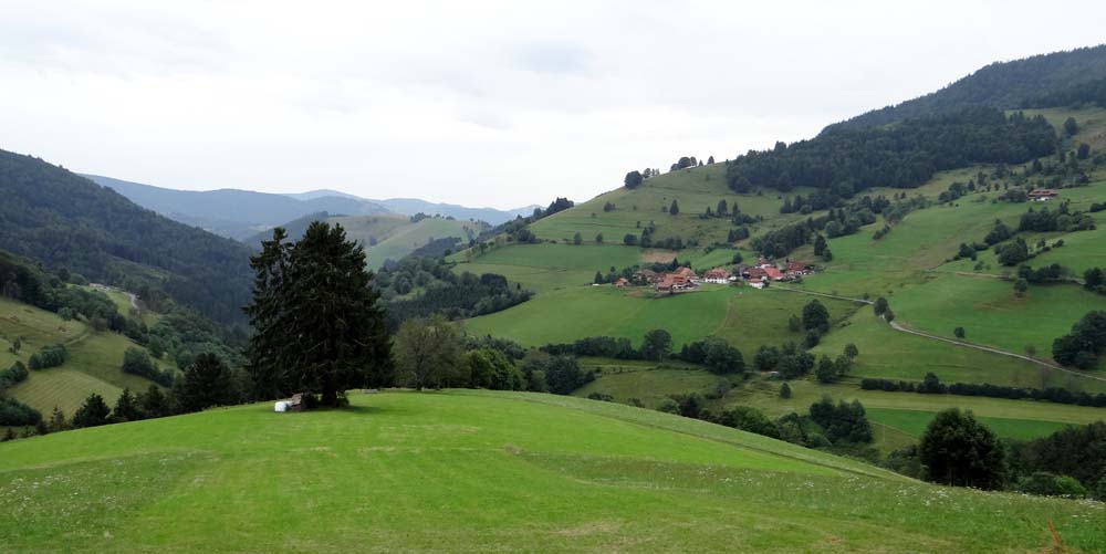 We had just passed Lake Titisee when a series of road signs flashed up warnings of major roadworks in Freiburg, we couldn’t understand most of it but I spotted the words Einen Stunde (one hour) on one of the electronic signs and at that all the cars in front of us made for the slip road, so we followed. Finding ourselves in a small town which was signposted as a dead end we pulled over, wandering where on earth the other cars were going!?, and got the map out. There was another route we could take, but it would be much longer, still it would be better than sitting in a queue of traffic in the Umweltzone! So, we turned around and retraced our tyre marks back past Lake Titisee then onwards south through the Black Forest.