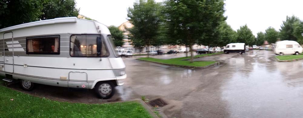 Of course the deviation took us down even smaller, winding roads so it was another hour before we reached Pontarlier. As we parked up the rain was throwing it down, so we fired up the laptop, grabbed some pillows and blankets and settled in to watch a film. The film was called ‘Im Juli’ and was a German film with English subtitles, so my brain is now totally confused as it was just starting to come to terms with being in France. Still we’ve got a few weeks here for it to get used to French once more.