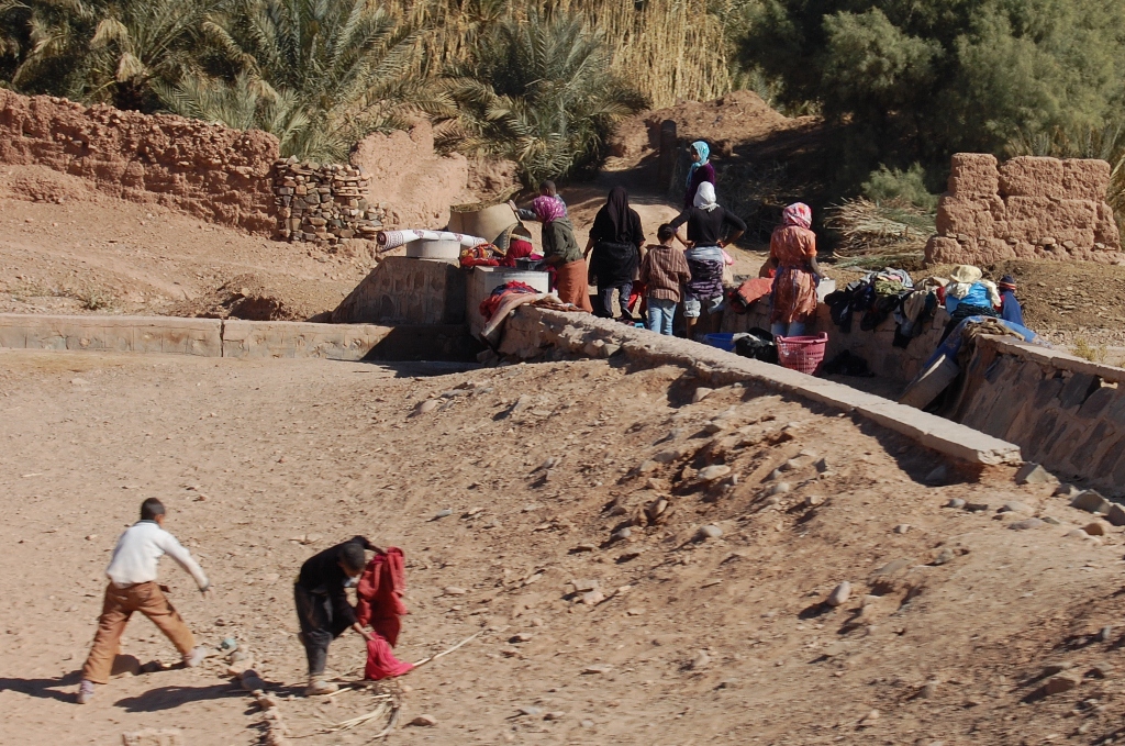 We were on the road for about four hours working our way back through the stunning scenery of the Valle du Draa. It looked like today was washing day as there were many groups of women sitting by the rivers and wells.