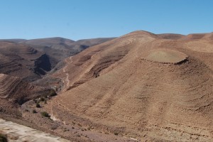 We got on the road quite early as we’d decided to drive straight back up to Ouarzazate (where we stopped a few days ago), having gone as far south as we wanted. Before we headed back north we stopped off at a famous painting in the town – J has even spotted Michael Palin in a photo next to it, that’s how famous it is!! He went looking for it on his bike yesterday but couldn’t find it – turns out he walked straight past it. Have a look at the photo below, it’s not small!! Should I be worried that he’s doing the driving?