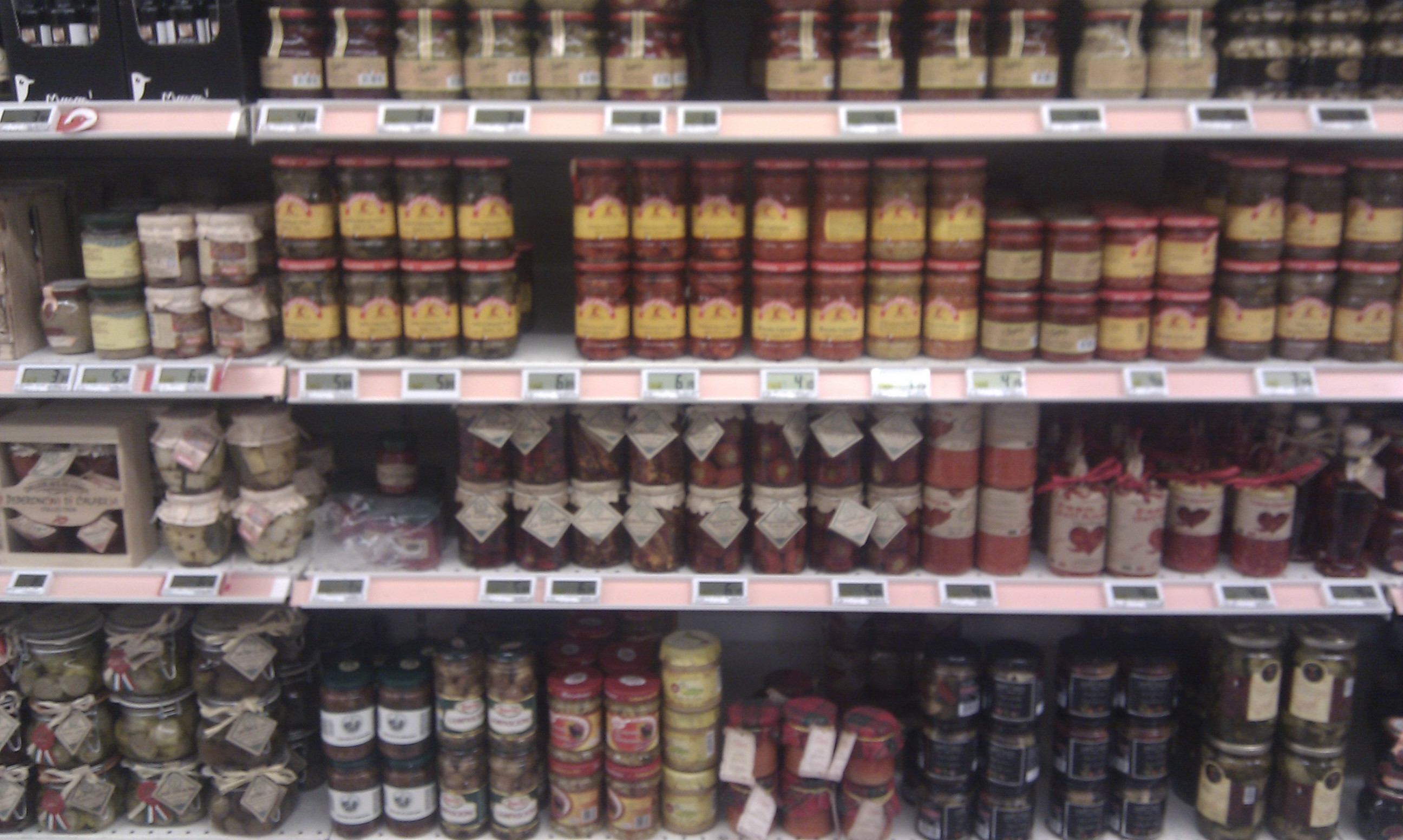 As our food supplies have starting to dwindle, my curiosity about the contents of Italian supermarkets has come back. We spent two hours today in a huge Auchan, wandering the isles and choosing an array of delicacies, cheap lager, bread, fresh vegetables and even a couple of bottles of local red. That’s right, we bought wine in bottles. Seven months of drinking the absolute cheapest wine we could find (including some donkey-wee stuff we got in Morocco) have set our wine-tasting baseline. Anything costing more than ‘fillthy cheap’ is going to taste like nectar, and it does.