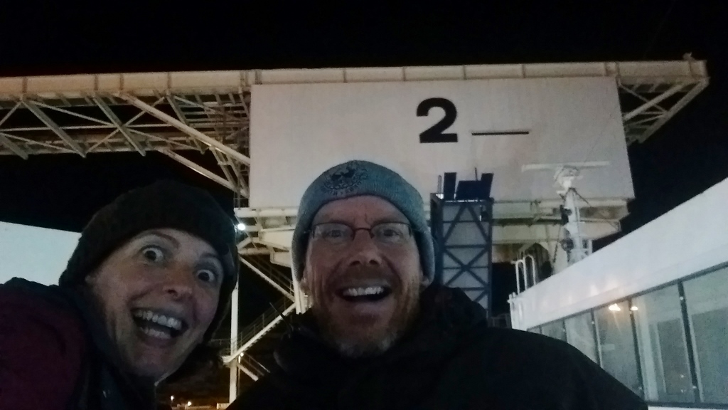 As darkness fell we were joined by a very small German camper, from which emanated a lot of banging. The mystery was solved as we drove off, when we spotted a tent pitched next to their van. We managed to take a wrong turn on the short drive to Dover (we’ll use the excuse that we’re not used to driving in the dark!) and found ourselves on increasingly narrow one way roads lined with cars.