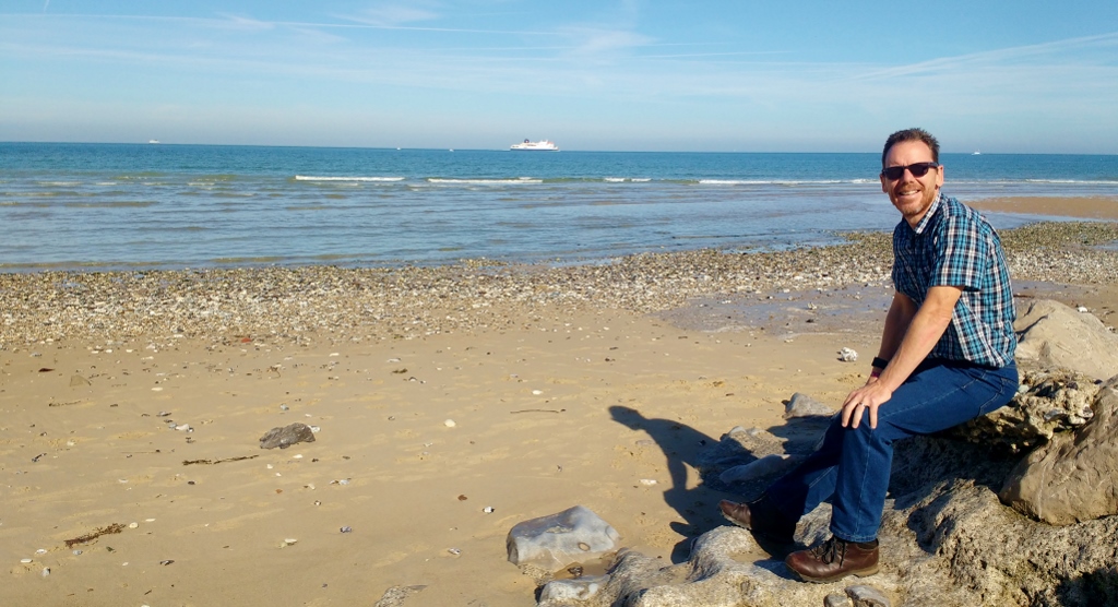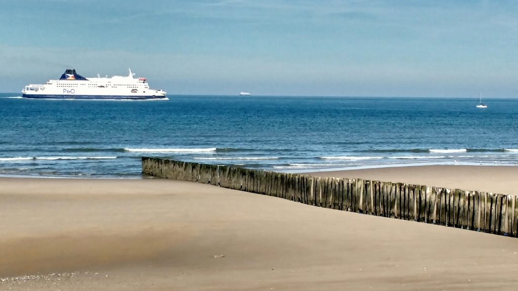 Zagan the motorhome has a sea view from his parking spot in Sangatte, France (N50.94064, E1.74140). We’re having a quiet day watching the ferries pootle forward and back across the channel, in the distance we can still see the white cliffs of Dover.