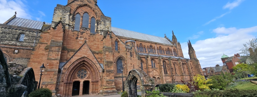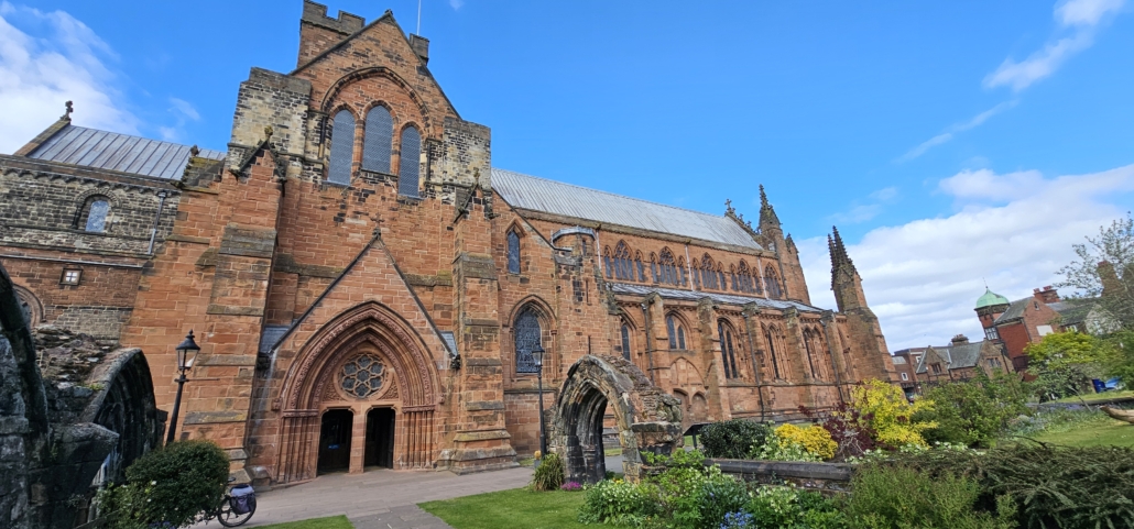 The path took us past the famous Tullie House museum. We’d both run 8 miles along the canal that morning and driven a couple of hours to get here, so we couldn’t summon the energy for exhibit peeking – also as it was a bank holiday, we’re pretty sure it (along with everything else) was about to close. Instead we headed into the cathedral for a slow-motion self-guided tour of Christendom in the north. Tons of information there, especially in the excavated underground treasury room.