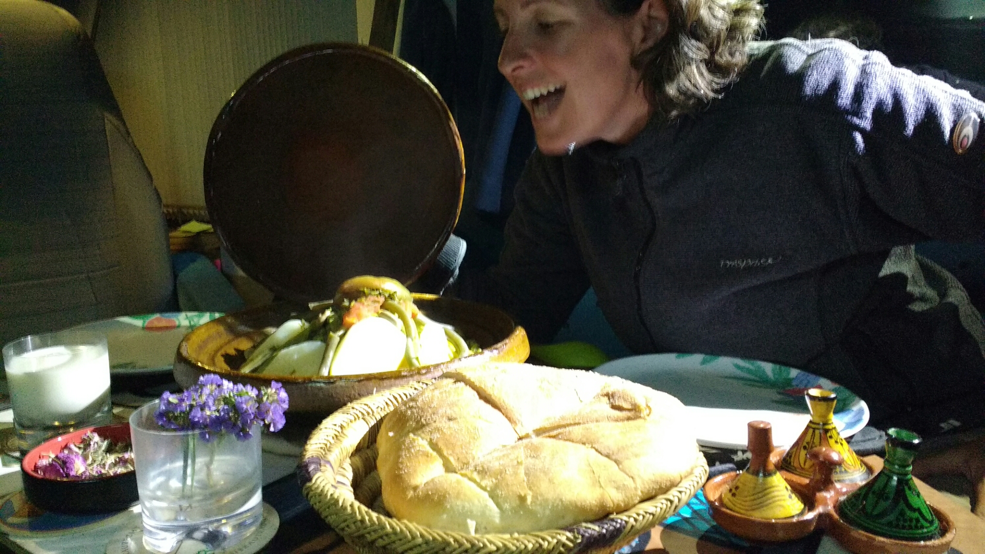 Over green tea in the Berber tent with some of the friendly French guests, they wound Brahimi up with a photo of a semi-naked lady, tales of same-sex marriage (he looked incredulous at this idea) and getting him to try fruit preserved in wine (which he spat out, making a face like a prune). The guy’s innocent, a lot of fun and always smiling and keen to please. Seeing the face of the Muslim wannabee immigrant this close up, shaking his hand, smiling with him, wider events in the world seem plain madness, driven by ignorance, politics and unfounded fear.