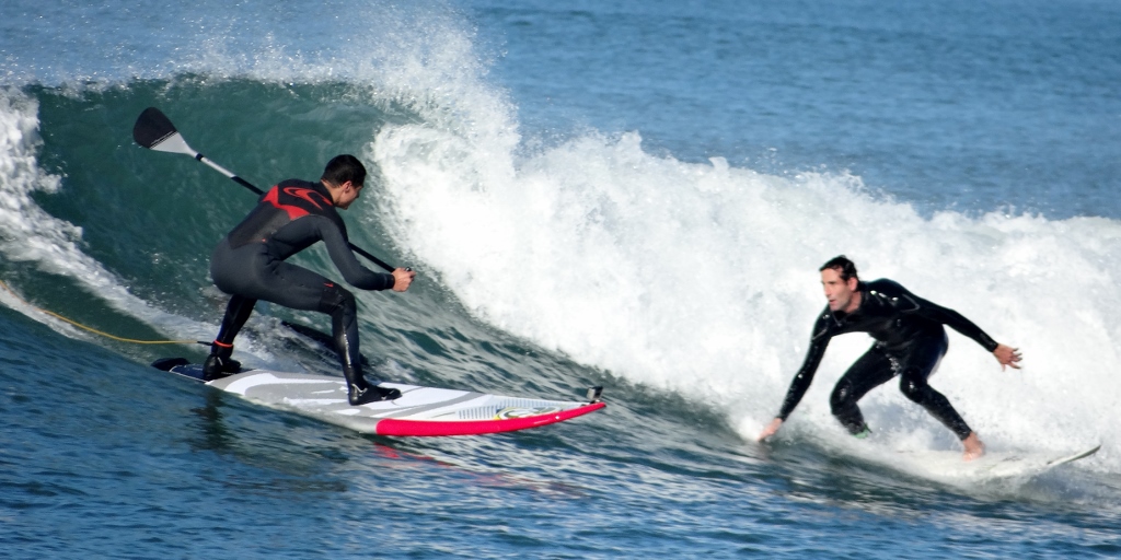 Stand-Up-Paddleboarding in the surf, respect to that man’s sense of balance!