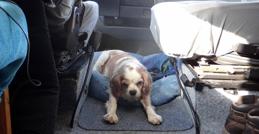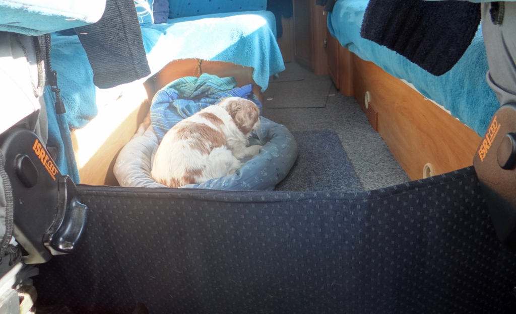 I slept really well last night, to be fair I do every night. I don’t know what Mum and Dad are on about when they talk about the snoring in the van, I never hear any. I get them to put my bed between the two front seats every night, so I can sleep under Mum and Dad like in bunk beds. When I woke this morning Dad asked me what I wanted for breakfast, but they had no steak or bones so I made do with some dog meat and biscuits.