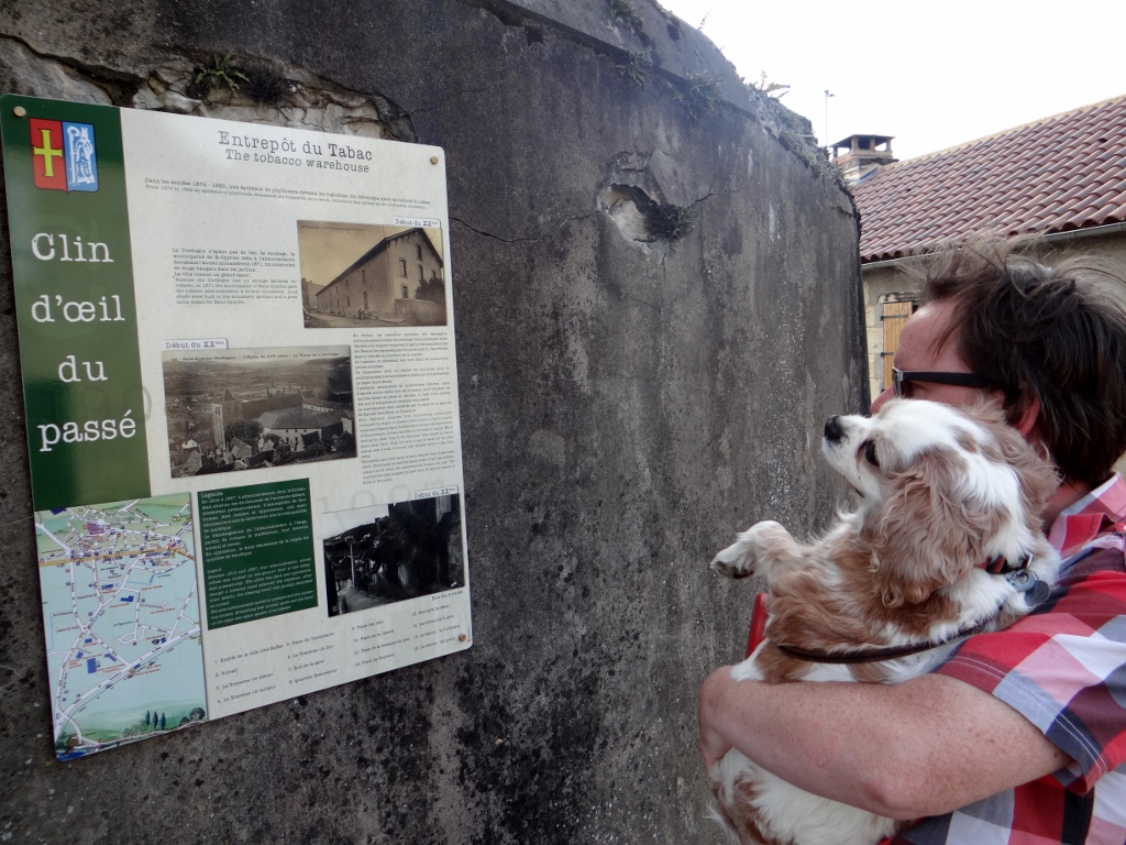 We set off again and drove to a place by the river that sells food and rents canoes, but it was all shut up and didn’t look great so we carried on to the next parking place. This one was in St Cyprien (N44.86858, E1.04380 – although I have no idea what these numbers mean!) which is a small town and looked just right for us. We parked up and went for a look around the old town.