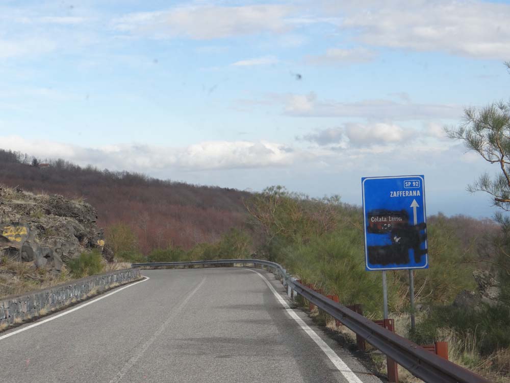 First off, thanks to you guys who got in touch to check we were OK after managing to post an abruptly-ending sentence to our blog yesterday. Nope, Etna didn’t erupt, nor gush forth from a side-channel, nor jetison a pyroclastic flow onto our unsuspecting noggins. Nah, we just cocked it up. Such calamities are feasible on an active volcano, but as far as we can tell, the locals get a fair bit of notice of the coming, relentless destruction of the road/the cable car/the tat shops/the circumetnea train line. All of these, along with an ill-fated if daftly-sited village, get periodically destroyed, perhaps explaining why the cable car tickets are wincingly expensive.
