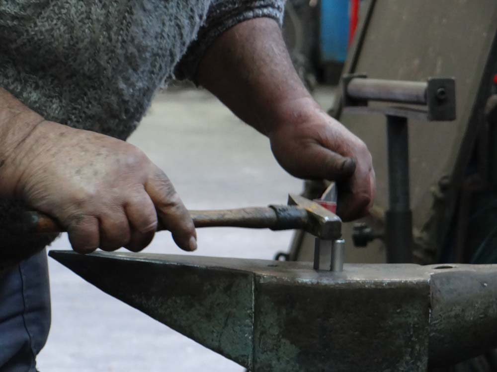 The chap worked without gloves, heating the metal in a small gas-powered furnace. His hands were as big as bear’s paws.
