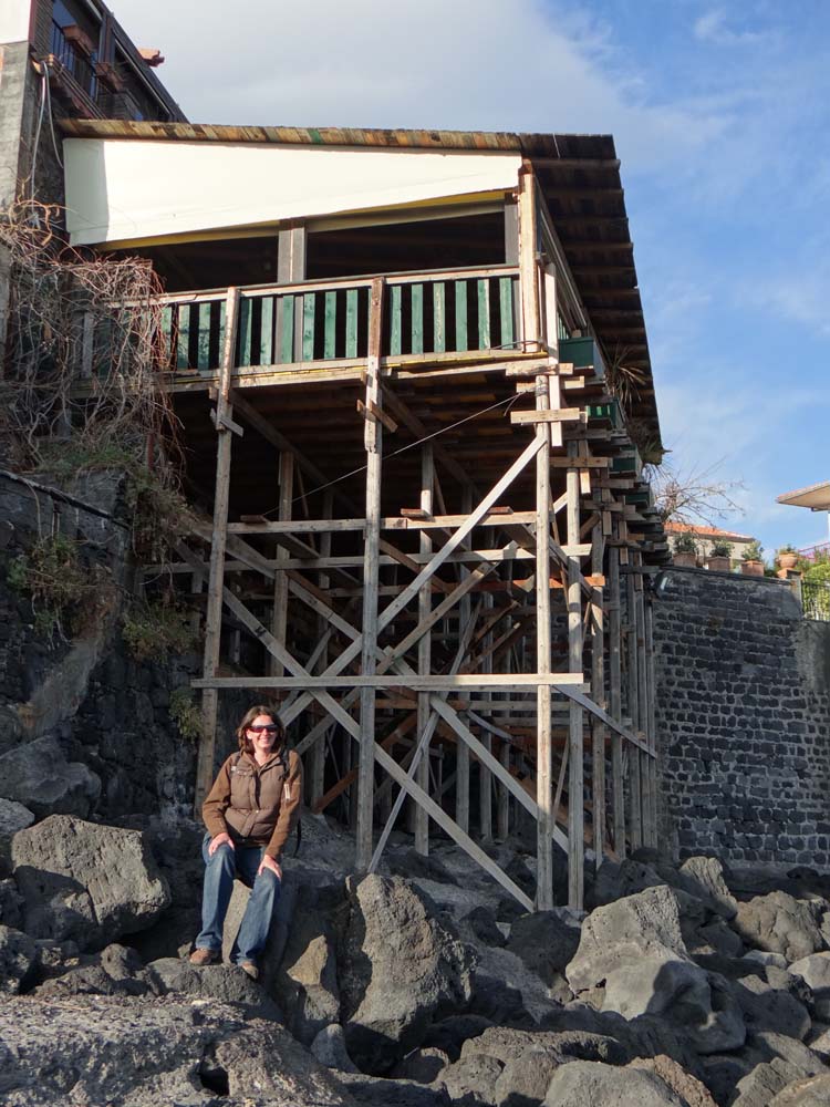 Dave the motorhome has left Etna, thankfully, and is facing his nemesis from afar in a car park in the small coastal town of Santa Tecla (N37.63845 E15.17637).