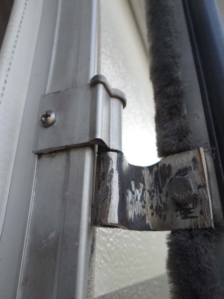 The workshop was a deep narrow affair, it smelled of work. I could see someone moving about in the back but no obvious sign of a reception or office, just heaps of raw metal, part-finished and completed works. Spying all the equipment I decided that (a) this was our place and (b) I’d need some back up. Forming rank with Ju back at the van, we took off one of the good hinges and headed back in, to find a man walking towards us with two metal spears. A quick discourse in almost non-existent Italian (including Ju explaining were from Nottingham – Robin Hood, Nottingham Forest), and an inspection at the van, and we were instructed to drive around the block and park up outside the workshop.