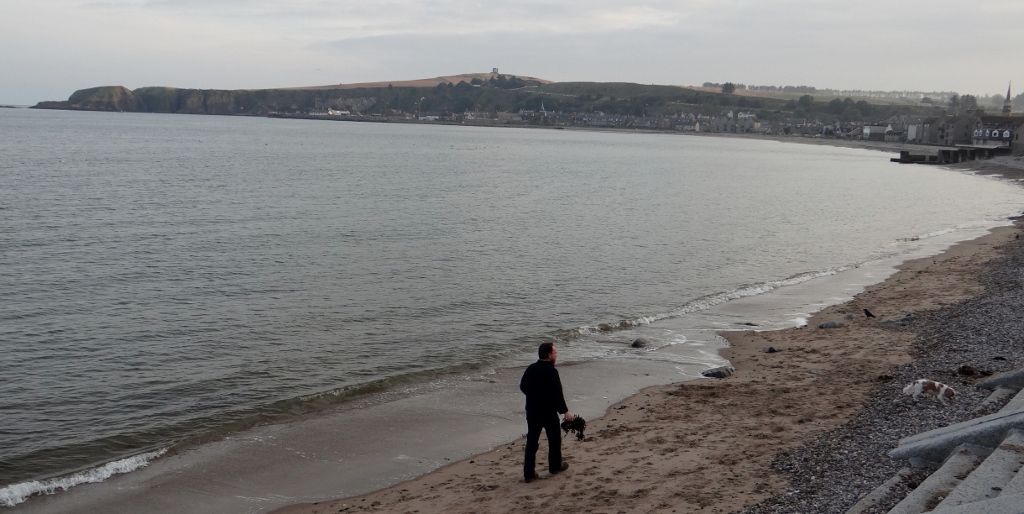 Stopping only for a sarnie in a motorway services car park, we arrived just after 5pm in Stonehaven, our stop for the night. The tourist office closed at 5pm, so we drove around for a while until we found somewhere to stop, then went for a walk to see where the best place was.