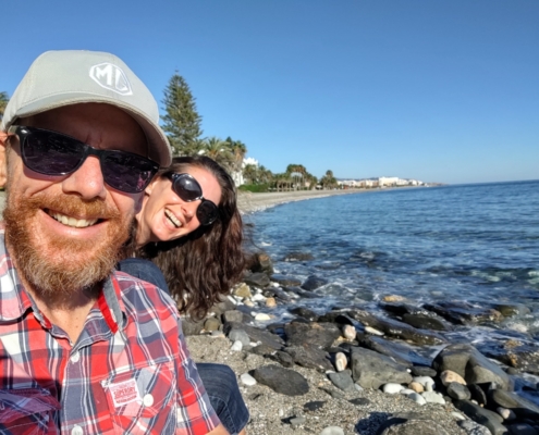 We had just settled into campsite life here in Nerja, Spain when a call from home brought about a sudden change of plan.