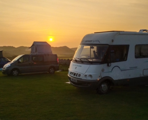 Sunny, relaxed days in our motorhome by the dunes and surf at Hillend Campsite, Rhossili Bay, Gower, South Wales