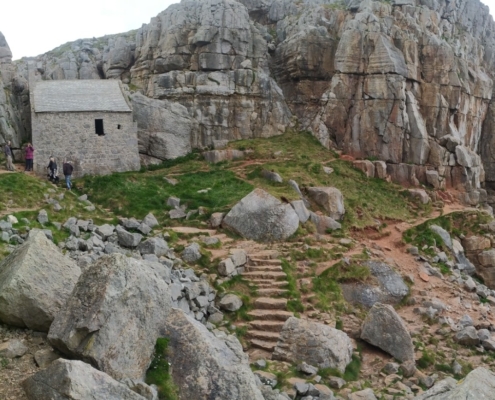 Before a couple of nights in Haverfordwest, we drive our motorhome past a live firing range, to St Govan's head to see the chapel and a bit of WWII history.