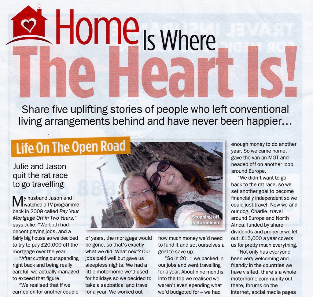 Fame, fame at last!We've made it into the Nov 2014 edition of Saga magazine in a feature about Grey Nomads, alongside some fabulous folks wandering the world on four wheels.