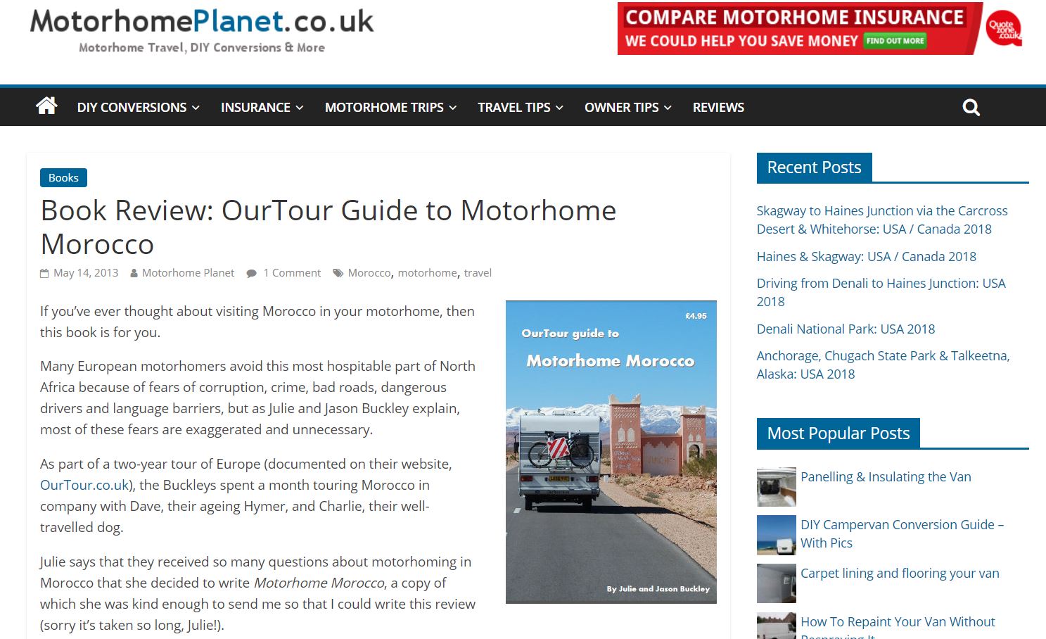 Motorhome Planet reviews our Motorhome Morocco book