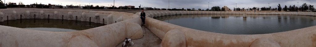 Last night in Kairouan on Charlie’s evening walk we headed away from the hustle and bustle of the medina we found ourselves at another of the attractions on our barely used ‘global ticket’. The Aghlabid pools were closed, but a side gate was open so we went in for a look. The municipal waterworks of the city many years ago, water travelled 36 kilometres to them by aqueduct and was stored in several pools with the hope of relieving the town of the summer heat. Instead they were a terrific mosquito breeding ground and a source of maleria. Thankfully visiting in the winter it was bug free, and quite underwhelming.