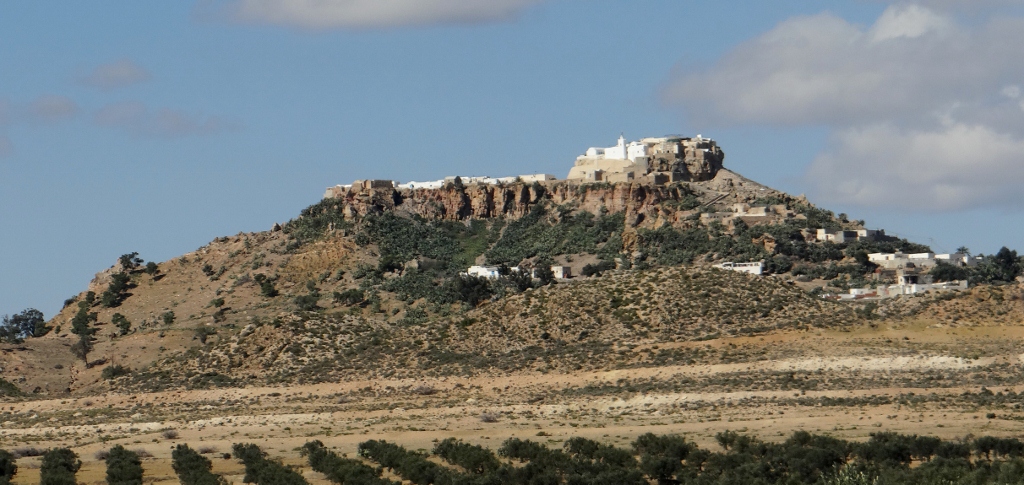 Reaching Enfida we followed the signs to the small hill-top Berber village of Takrouna passing the Commonwealth and French Military cemeteries where those who fought over this tiny village now rest. We parked Dave at the bottom of the hill and climbed up using the beautifully refurbished ‘Tourist Route’.