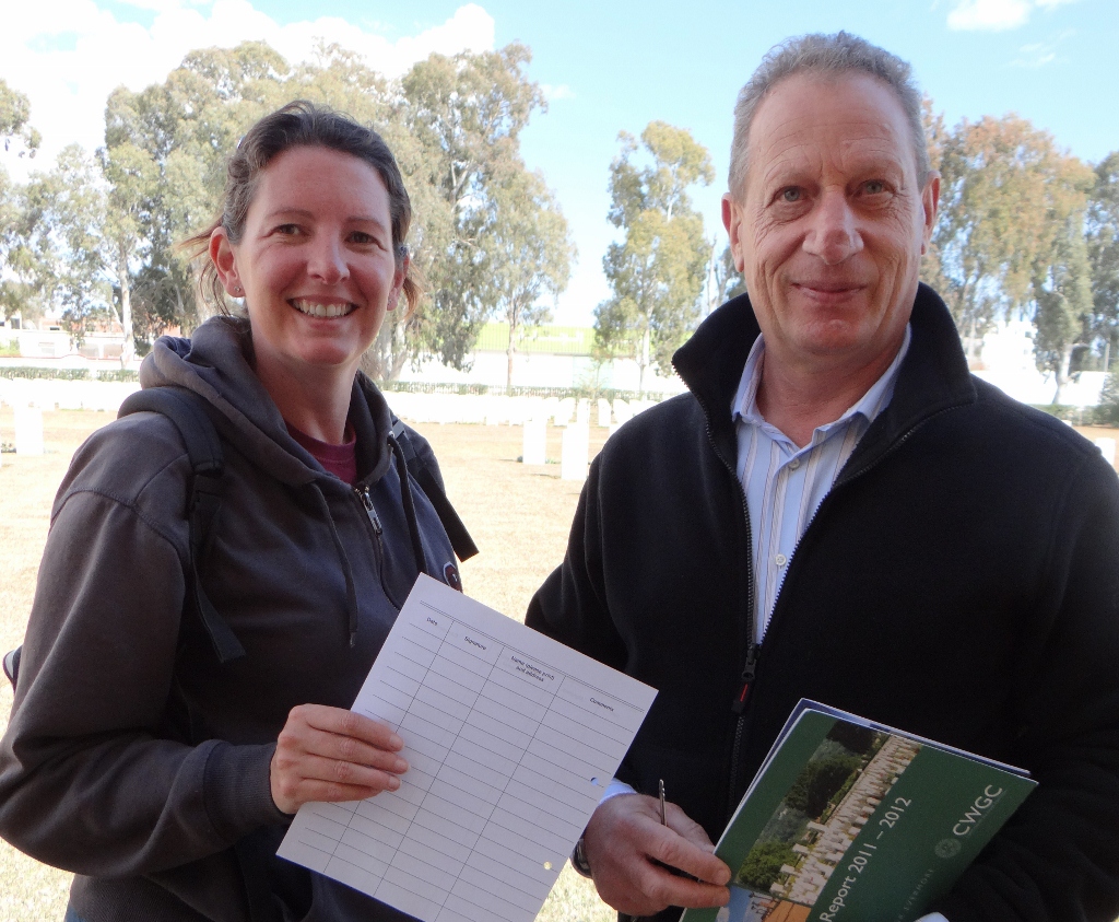 Jeffrey and his team do an amazing job keeping these little piece of home in pristine condition, especially when you consider the surroundings many of them are in. I asked him about the visitors book for the cemetery was as we couldn’t find it on our visit. He explained a local woman looked after it, and would walk to the cemetery each day from her village 2 kilometres away to check everything was OK. Unfortunately our visit didn’t coincide with hers, so he gave me a blank visitors book page so I write a message and he would make sure it got inserted into the book. The message was simple ‘Visiting David William Smith (Plot E14), my Grandfather. Thank you for looking after him.’