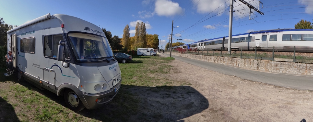 As we arrived in Chenonceaux we avoided the signs for the chateau motorhome parking as that is only open from 9am to 9pm, instead we parked about 50 metres closer to the train line in a spot that is listed as an overnight parking. This means we are only about 10 metres from the train lines, but they stopped running at 10pm.