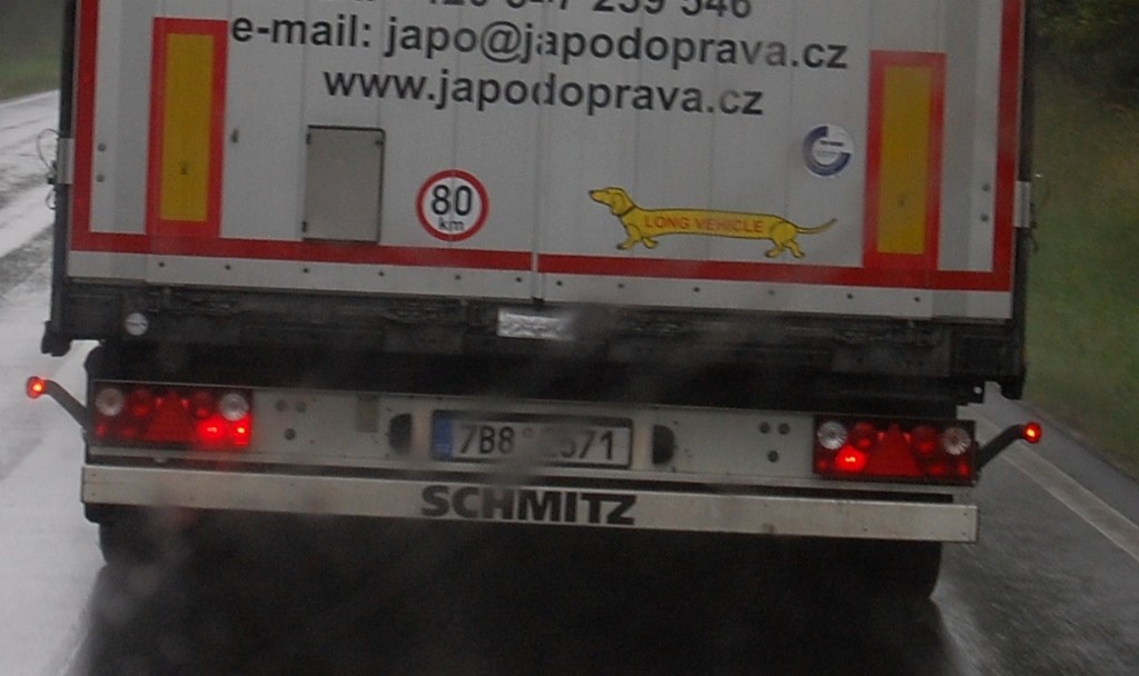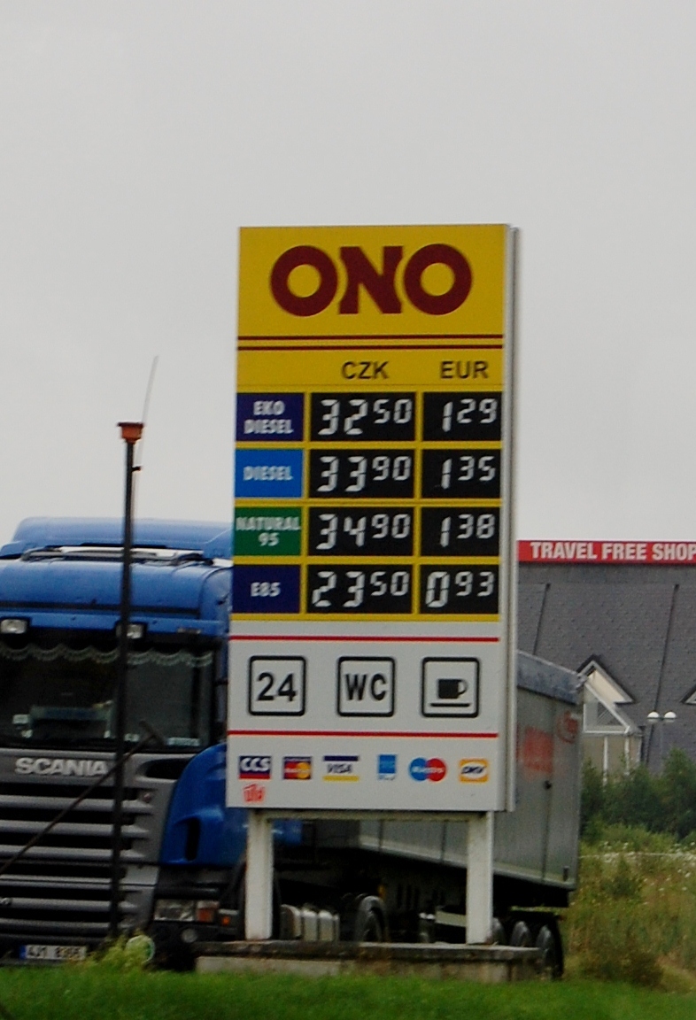 As we reached the border the old signs are still there, the boots and covered areas like petrol station forecourts, but no people, we just breeze through – this open border thing is fab. We pull in at the first petrol station a few meters into the Czech Republic and I jump out while Jay reviews the price of diesel. ‘Vignette?’ I ask, ‘Czech?’ the assistant replied, I nod, she shakes here head and points up the road. A bit further along, just past another petrol station – it’s a bit cheaper here so they’re obviously set up for Austrians nipping across to fill up – we spot a booth that does currency exchange and vignette. Parked next to it are out friends the tractor lorries.