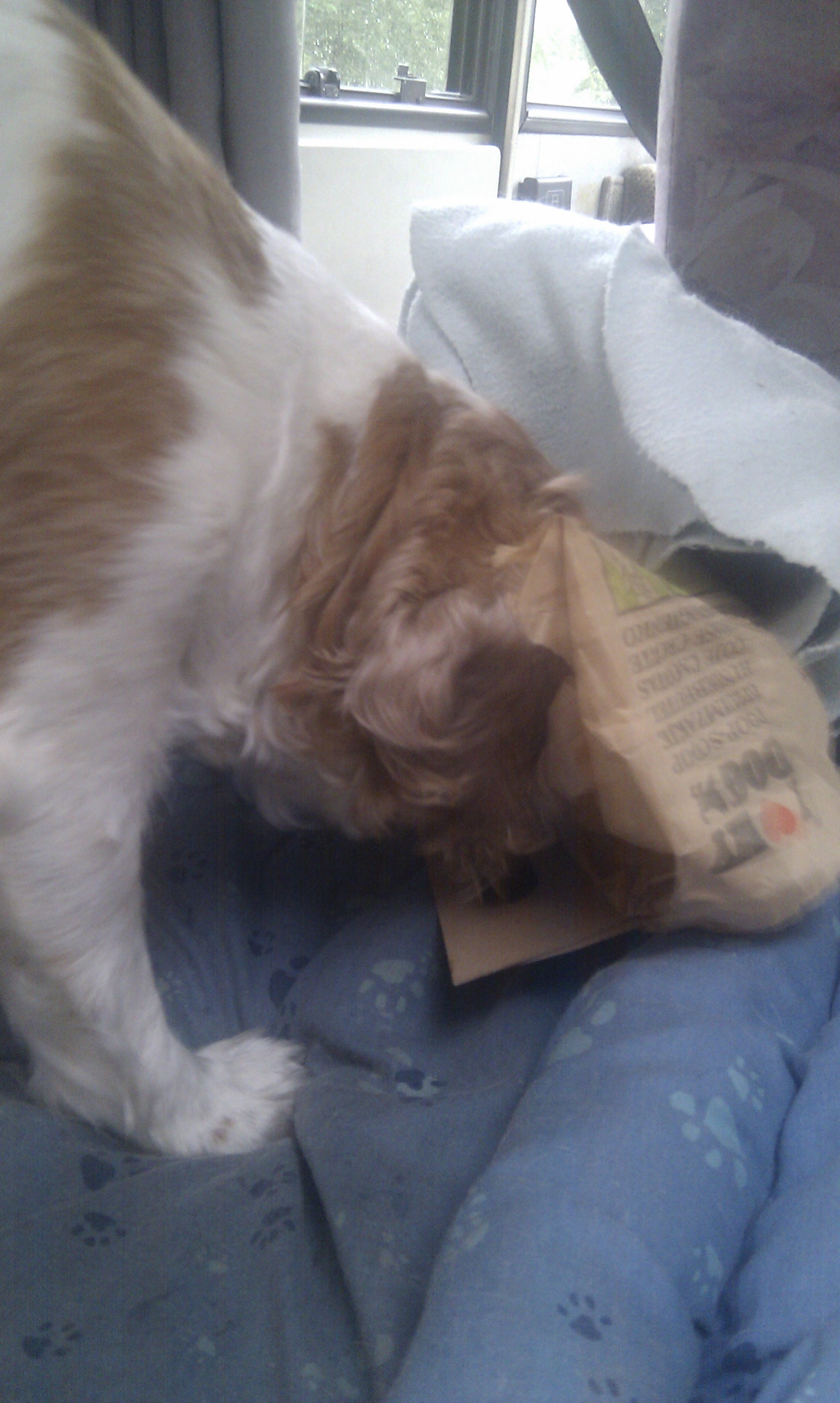 Of course, being stuck in Dave means Charlie getting a bit bored, so wrapping his favourite snacks in empty toilet roll tubes and over-engineered paper dog poop scoops, from towns with too much money on their hands, to keep him entertained. He’s done a bit of training too, so he can now do a good high-five with food on offer and no other distractions – we’ll work on it.