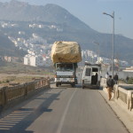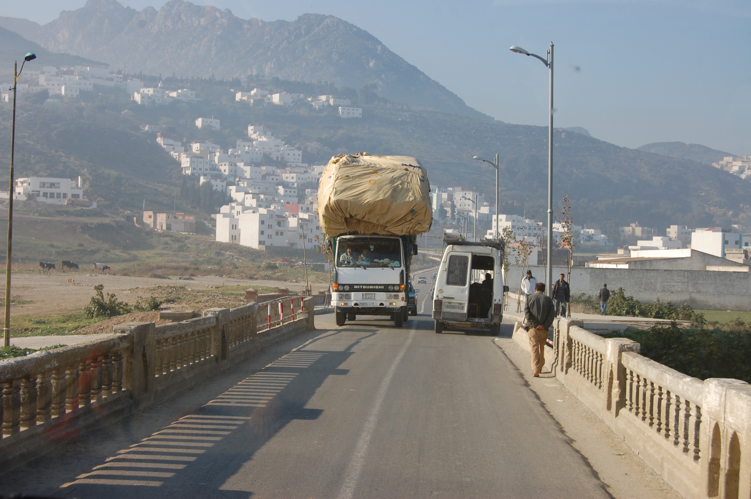 We programmed our satnav with the campsite at Chefchaoen, and headed off. The journey was pretty uneventful to start off, apart from me accidentally straying off onto the toll motorway back to M’Diq, incurring a 12Dh (about £1) charge (6Dh for the 10Km there, and 6 for the 10Km back). We then filled up on diesel (7Dh/litre – about 60p a litre!) and got onto the good roads. The little single track fellas winding their way through valleys, through towns and along hillsides. It was like a hazard perception test on acid: