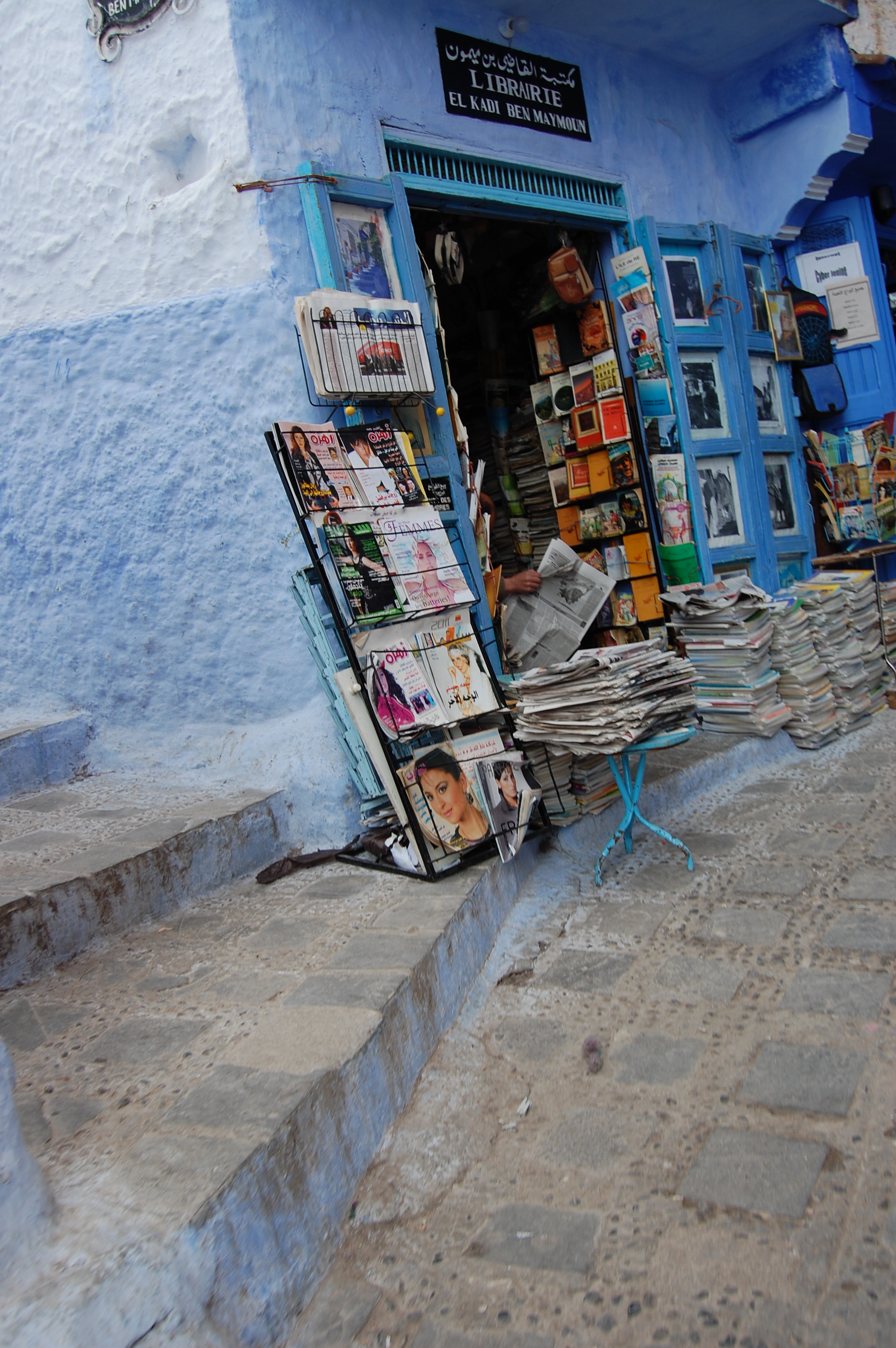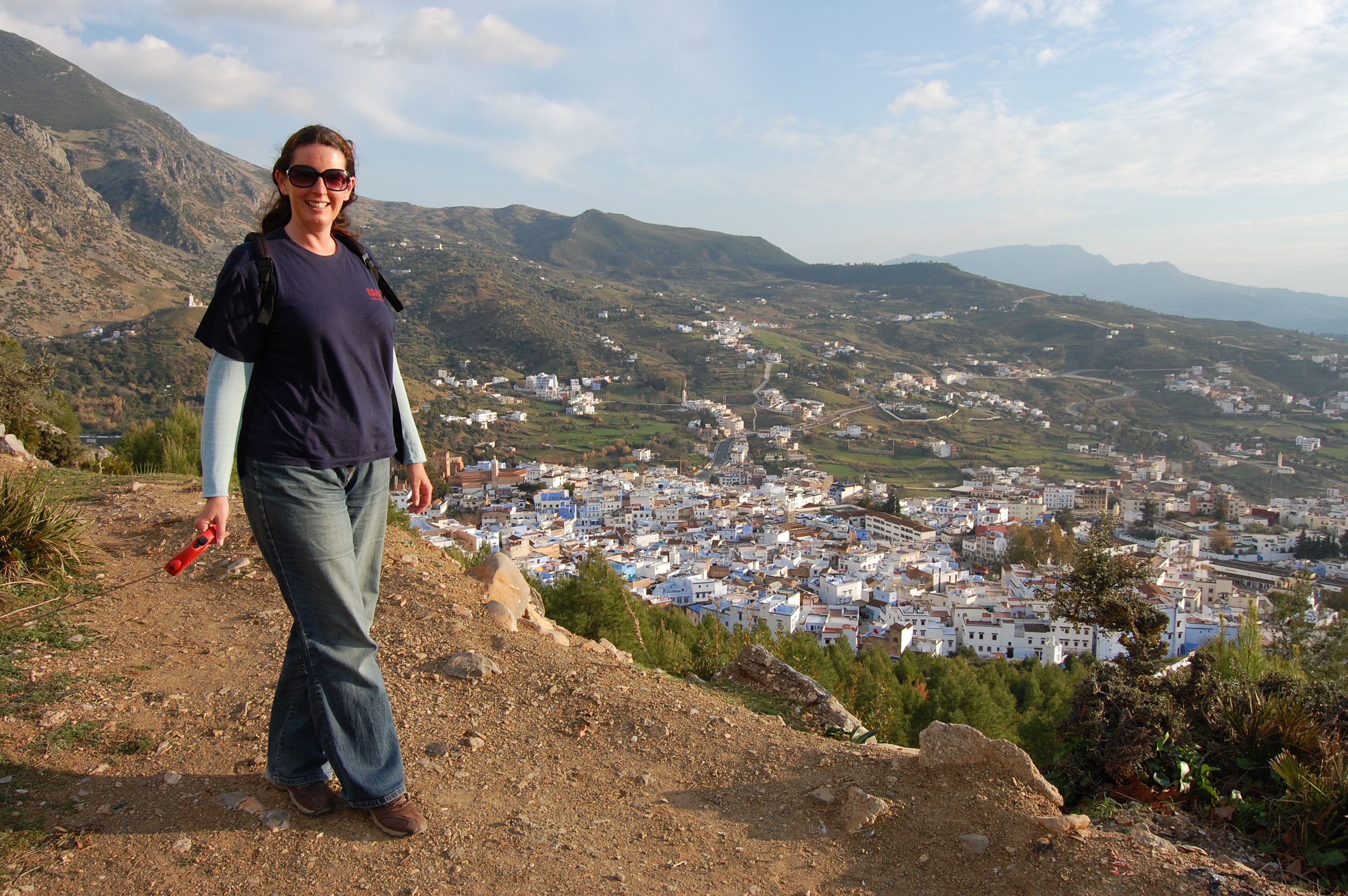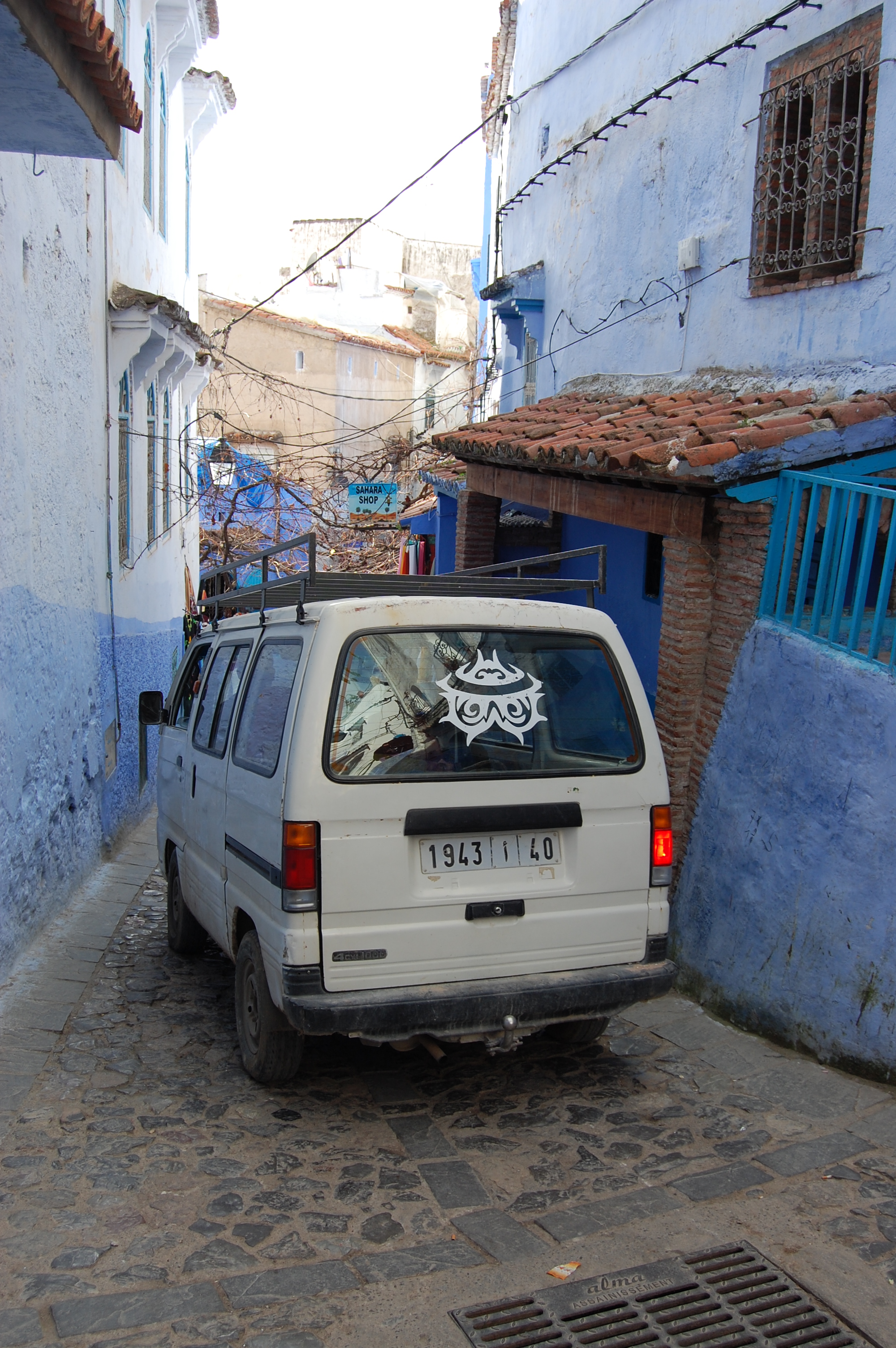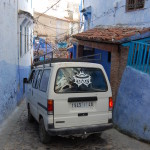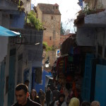 About 200 meters later, the hassling started: kids asking for sweets and locals wanting to sell us ‘chocolate’. All good humoured, although it took us (well me, for some reason they all went for me) a while to get used to issuing a friendly ‘La Shukran’ (no thanks), which after a few repeats generally worked. A good set of steps took us through the local graveyard (graves randomly strewn down the hill), and into the multi-hewed blue medina.