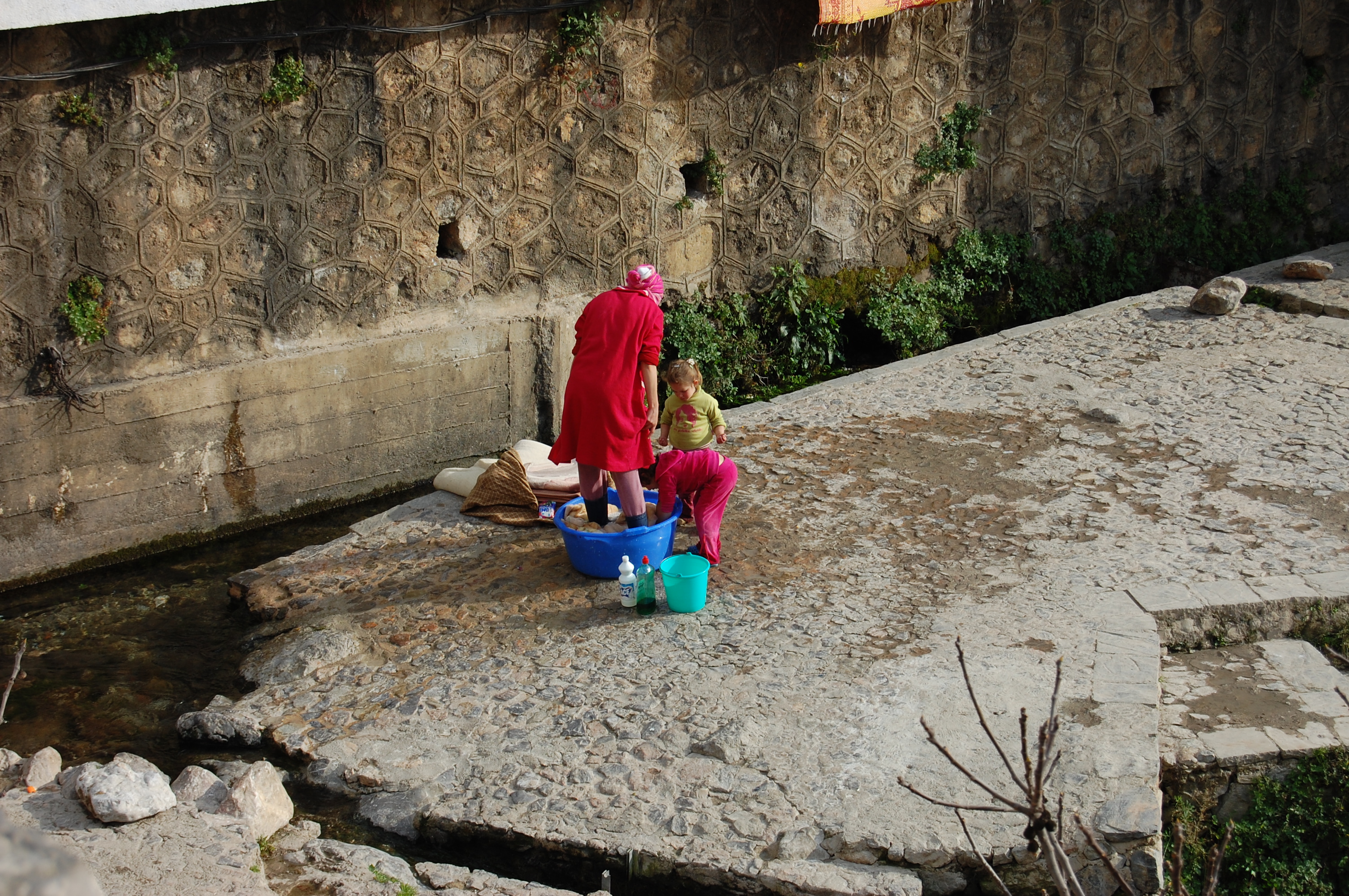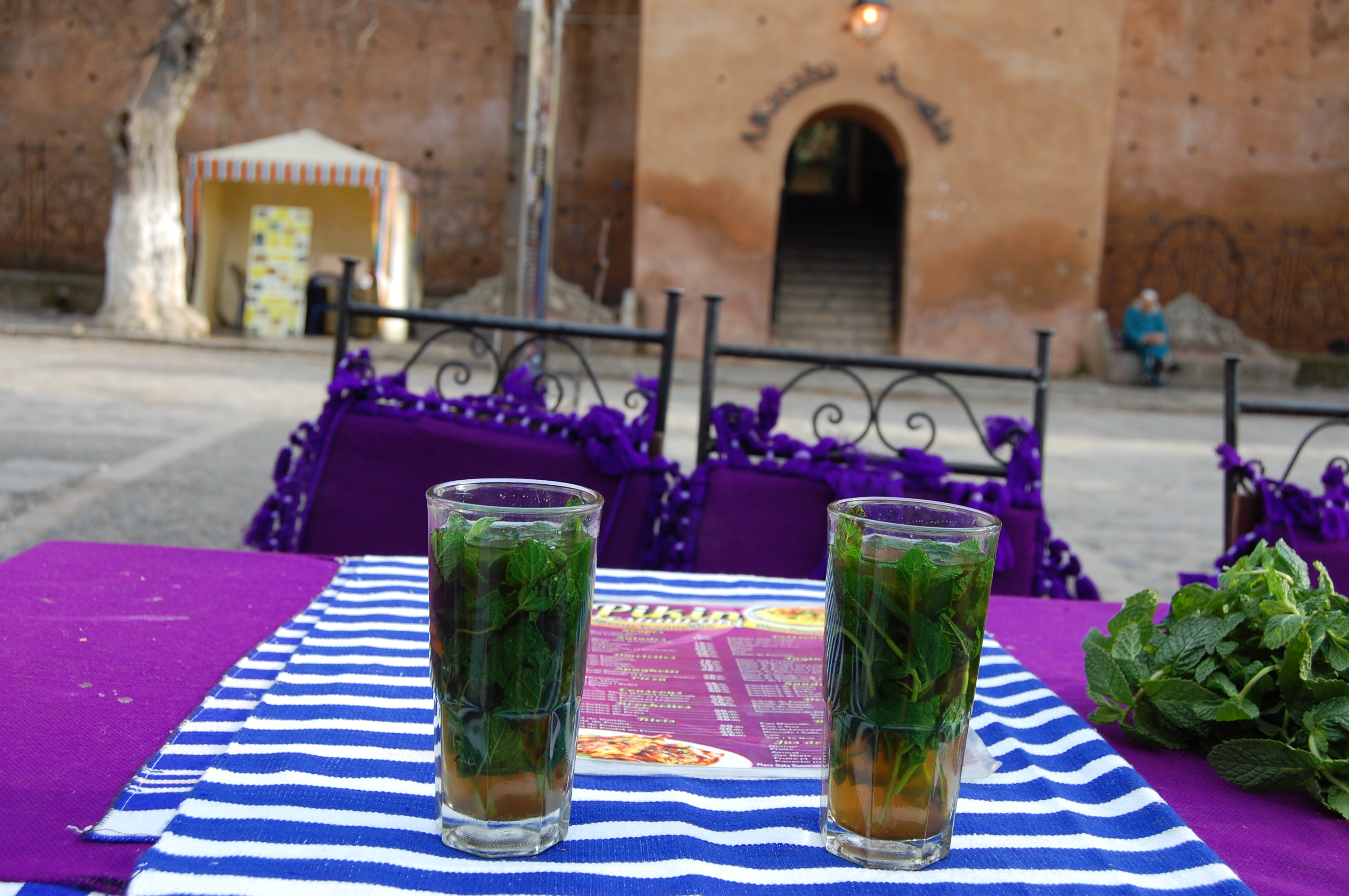 On the other side of the medina, the river flows, and the women work. They wash clothes by hand, or by foot, in the cold water of the river. Just as amazing to see as the guys ploughing by hand. I’m so naive. I did’t expect to see this in northern Africa. I’m a little shocked, but the people here seem to be very happy with their lot, and who am I to argue. We come back into the medina, let a tout grab us and see off a couple of mint teas opposite the Kasbah. A man arrives with a violin and makes such a racket we have to leave. I give him a couple of dirhams (a whole 15p); I felt sorry for the fella.