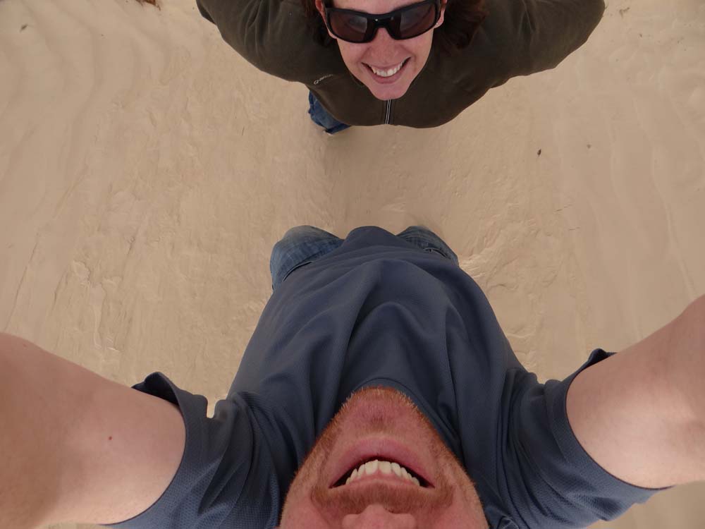 Not that we’ve seen much begging. A couple of lads sat alongside their moped went all flappy-armed as we drove past, the universal sign of slow down, which we failed to do. I wondered if they were broken down, Ju pointed out the town was about 5 minutes walk. Later we stopped to fool around in the dunes (did I mention the dunes, they were flippin’ awesome!). The boys cruised past, saw me walking back to Dave and spun around. I pulled the ‘sorry old chap, I’m British dontya know, no comprendo’ stunt. He gesticulated and spoke in French, getting a bit frustrated the poor fella, as he tried to flog us something or beg for cigarettes. He finally drove off as I started up Dave in a mildly threatening ‘I’ll be running you over now old chap’ kind of way, the fingertips of his left hand held together and pointing downwards, a sign we learned yesterday means ‘patience’.